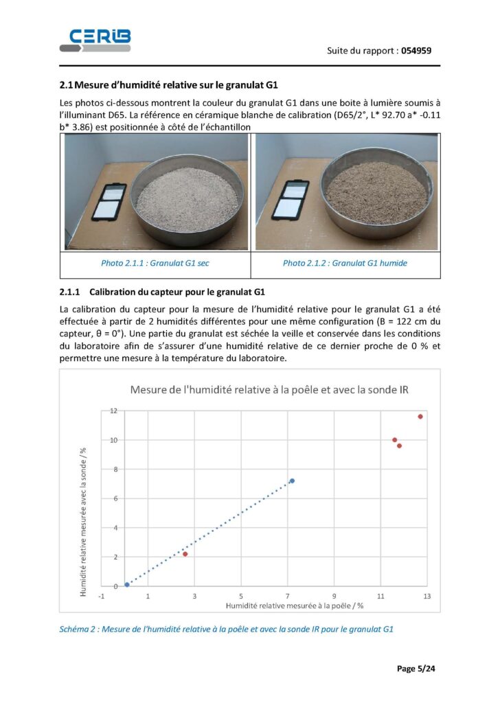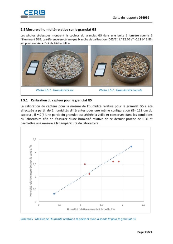 La démarche s’appuie sur un principe simple et opérationnel : une droite d’étalonnage établie à partir de deux points pour chaque granulat, puis une série de mesures réalisées avec le capteur dans la configuration définie.