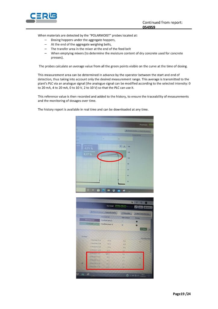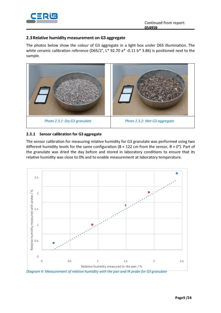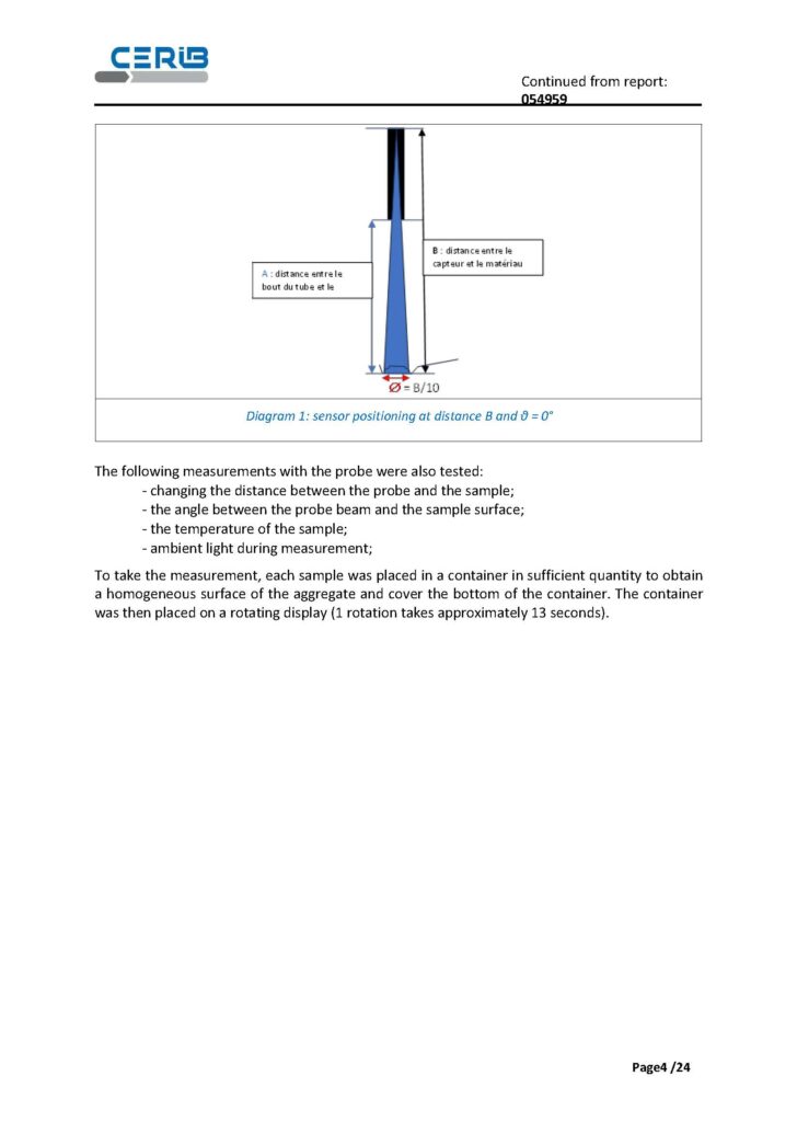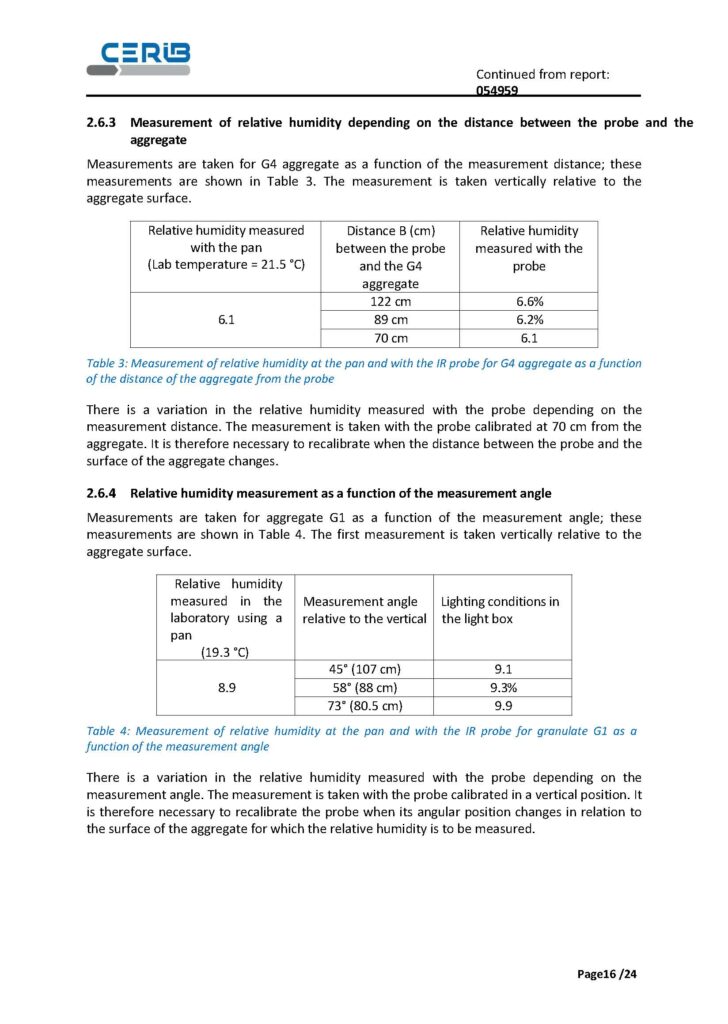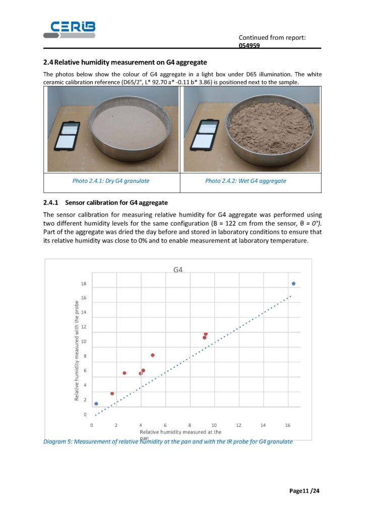 Approach is based on a simple and operational principle: a calibration curve established from two points for each aggregate, followed by a series of measurements taken with the sensor in the defined configuration.