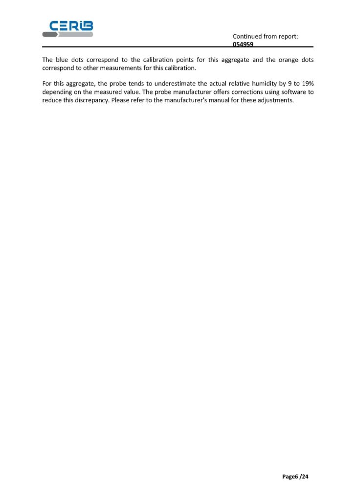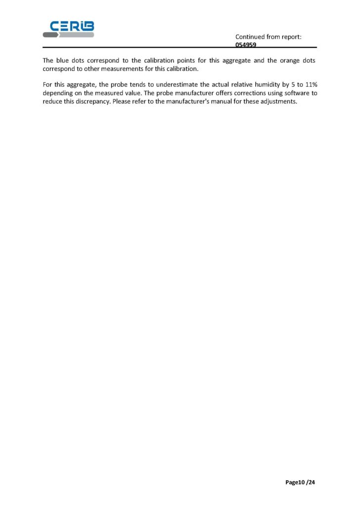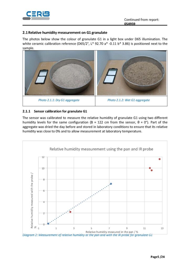 For all points, the report provides a graphical summary linking ‘actual’ humidity and measured humidity, which is useful for visualising the dispersion by granule.
