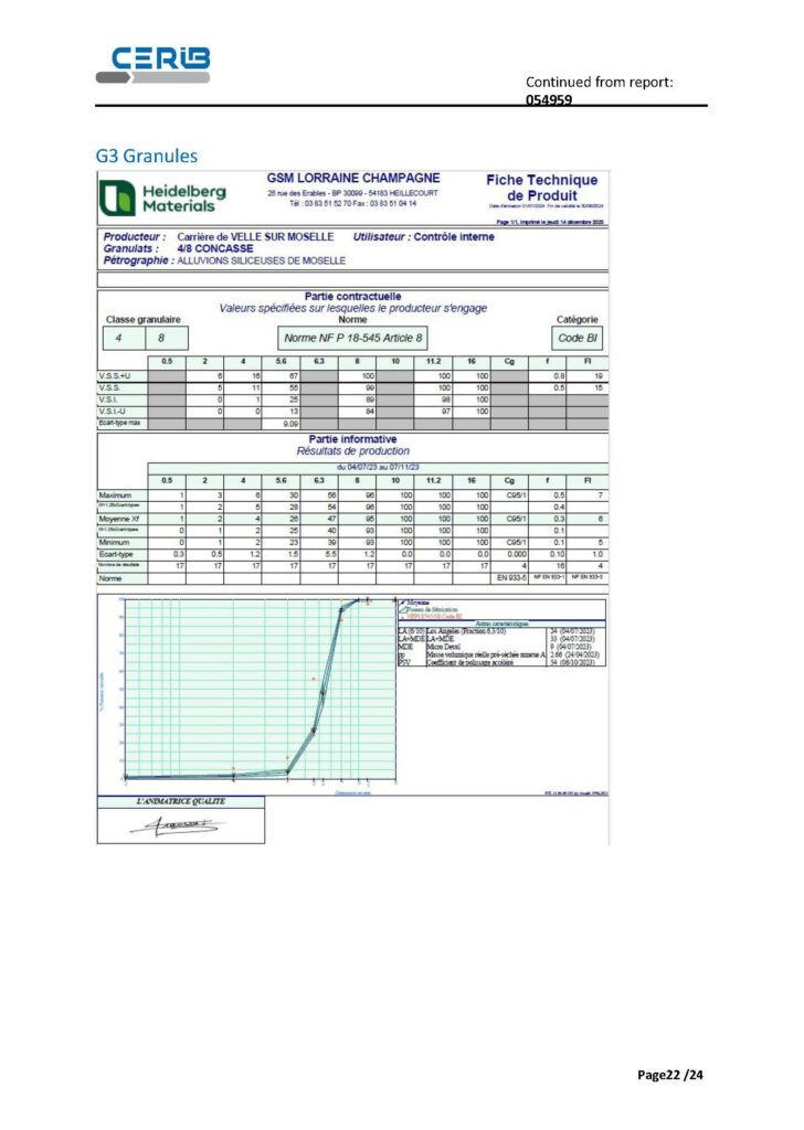 Campaign is being conducted in a climate-controlled laboratory (21°C ± 2°C), on a sample of five aggregates of different origins and types (G1 to G5): limestone, alluvial, siliceous, quartz and mixed.