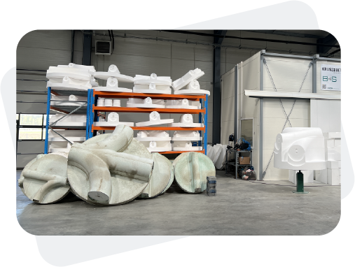 • Moules de réservoirs / cuves, voussoirs, moules de centrifugation, traverses ferroviaires et éléments spéciaux (bordures, glissières, pièces paysagères, etc.).